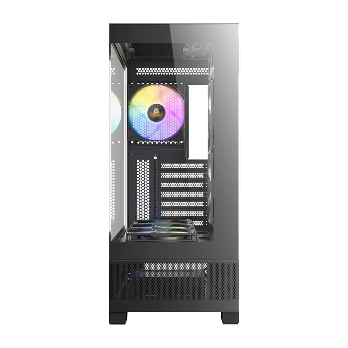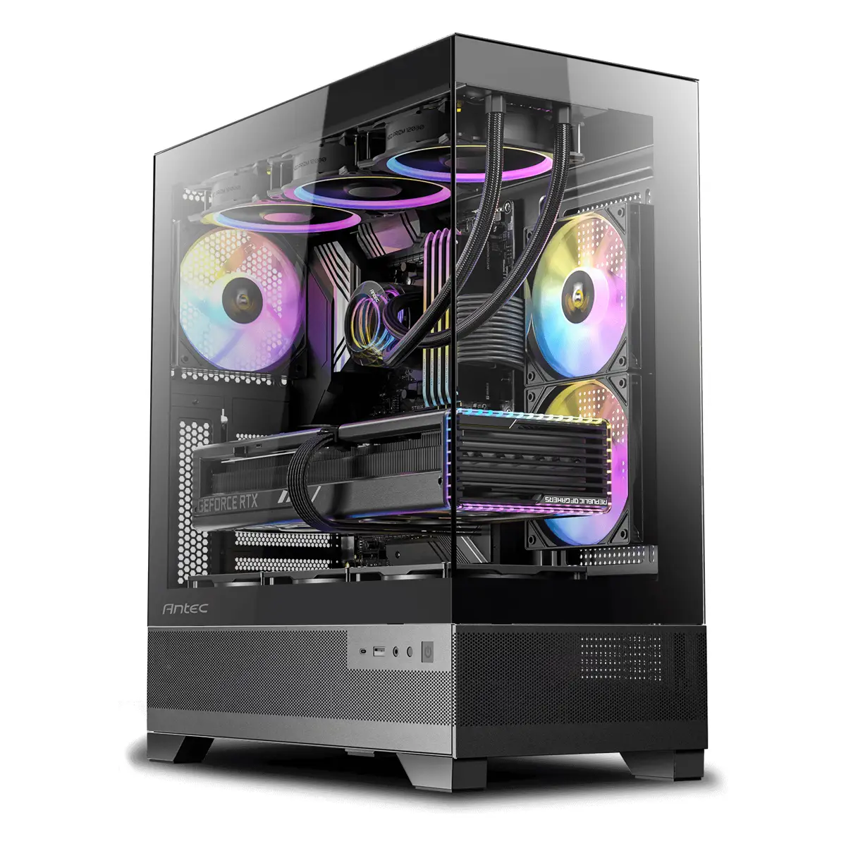 Con un diseño que se destaca por su vista completa sobre un vidrio templado de acero de 4 mm sin uniones, el panel frontal e izquierdo del CX700 RGB ELITE ofrece una vista sin obstrucciones de su construcción, creando una exhibición sorprendente para sus componentes.
