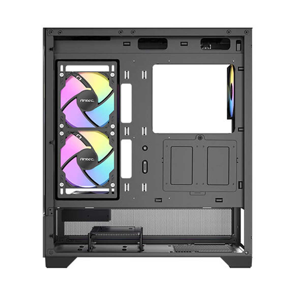 2 ventiladores inversos ARGB PWM de 120 mm preinstalados en el lado derecho y 1 ventilador ARGB PWM de 120 mm en la parte trasera (CX700 ARGB).