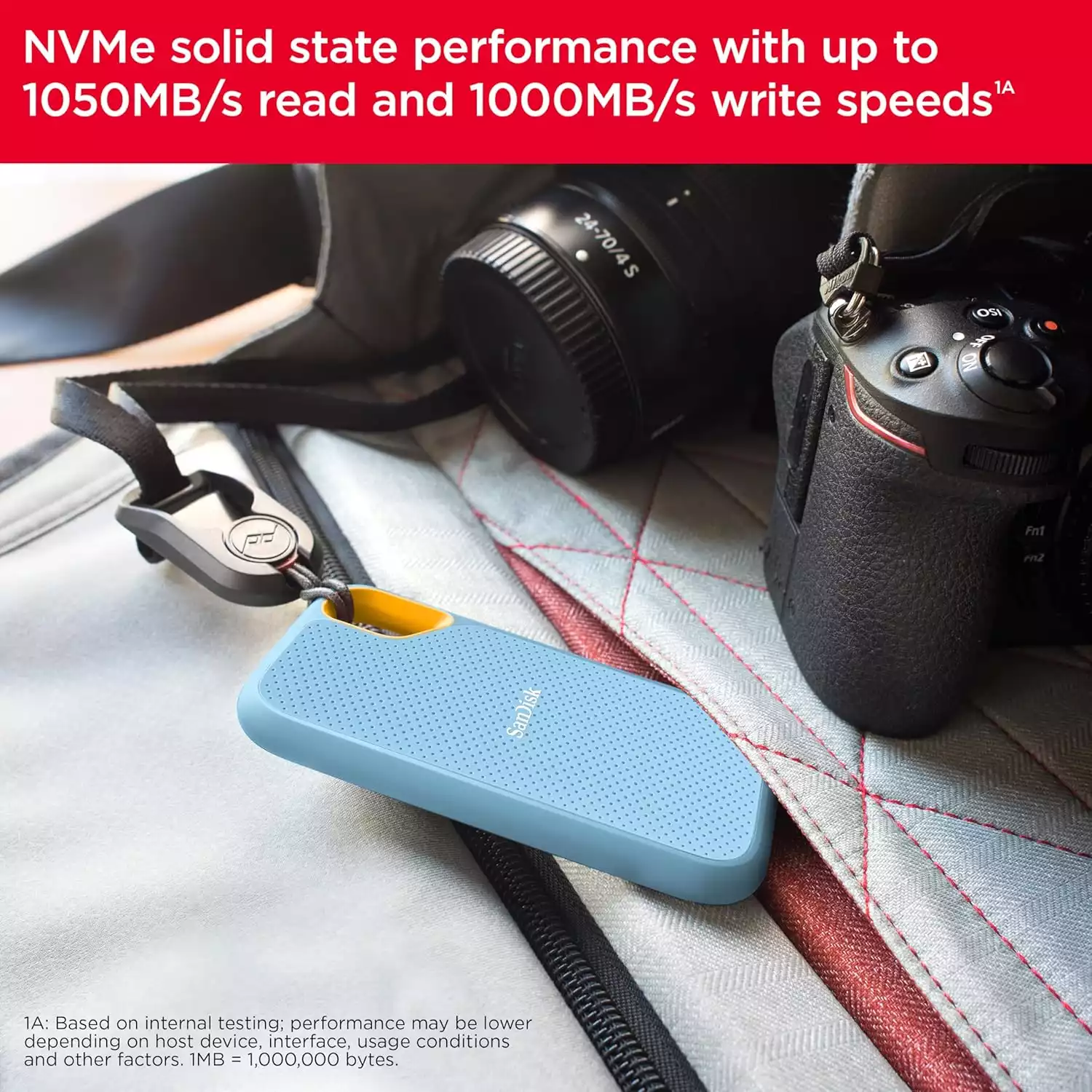 Potente y portátil. Obtén el veloz rendimiento de estado sólido NVMe™ con velocidades de lectura de 1050 MB/s2 y velocidades de escritura de 1000 MB/s2 en una unidad portátil de alta capacidad que es perfecta para crear contenidos increíbles o capturar fantásticas imágenes.