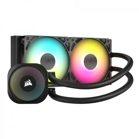 El CORSAIR Nautilus 240 RS ARGB es un sistema de refrigeración líquida para procesadores diseñado para optimizar el rendimiento térmico y minimizar el ruido. Con dos ventiladores ARGB de 120 mm y una velocidad de rotación de 2100 rpm, este sistema proporciona un flujo de aire de 74,4 cfm, lo que garantiza una refrigeración óptima para tareas intensivas.