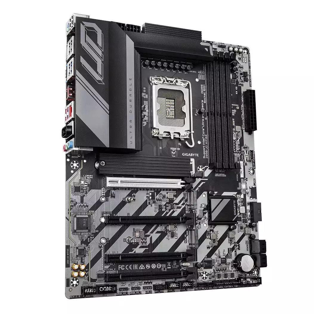 GIGABYTE Placa base Z890 UD WIFI6E - Compatible con CPUs Intel Core Ultra (Serie 2), VRM de 12+1+2 fases, hasta 8800MHz DDR5 (OC), 1xPCIe 5.0 + 2xPCIe 4.0, Wi-Fi 6E, LAN 2.5GbE, USB 4. Fabricante de procesador: Intel, Socket de procesador: LGA 1851 (Socket V1), Procesador compatible: Intel Core Ultra (Series 2). tipos de memoria compatibles: DDR5-SDRAM, Memoria interna máxima: 256 GB, Tipo de ranuras de memoria: DIMM. Interfaces de disco de almacenamiento soportados: M.2, SATA III, Tipos de unidades de almacenamiento admitidas: HDD & SSD, Niveles RAID: 0, 1, 5, 10. Tipo de interfaz ethernet: 2.5 Gigabit Ethernet, Estándar Wi-Fi: Wi-Fi 6E (802.11ax), Wi-Fi estándares: 802.11a, 802.11b, 802.11g, Wi-Fi 4 (802.11n), Wi-Fi 5 (802.11ac), Wi-Fi 6 (802.11ax), Wi-Fi 6E.... Componente para: PC, Factor de forma: ATX, Familia del chipset: Intel