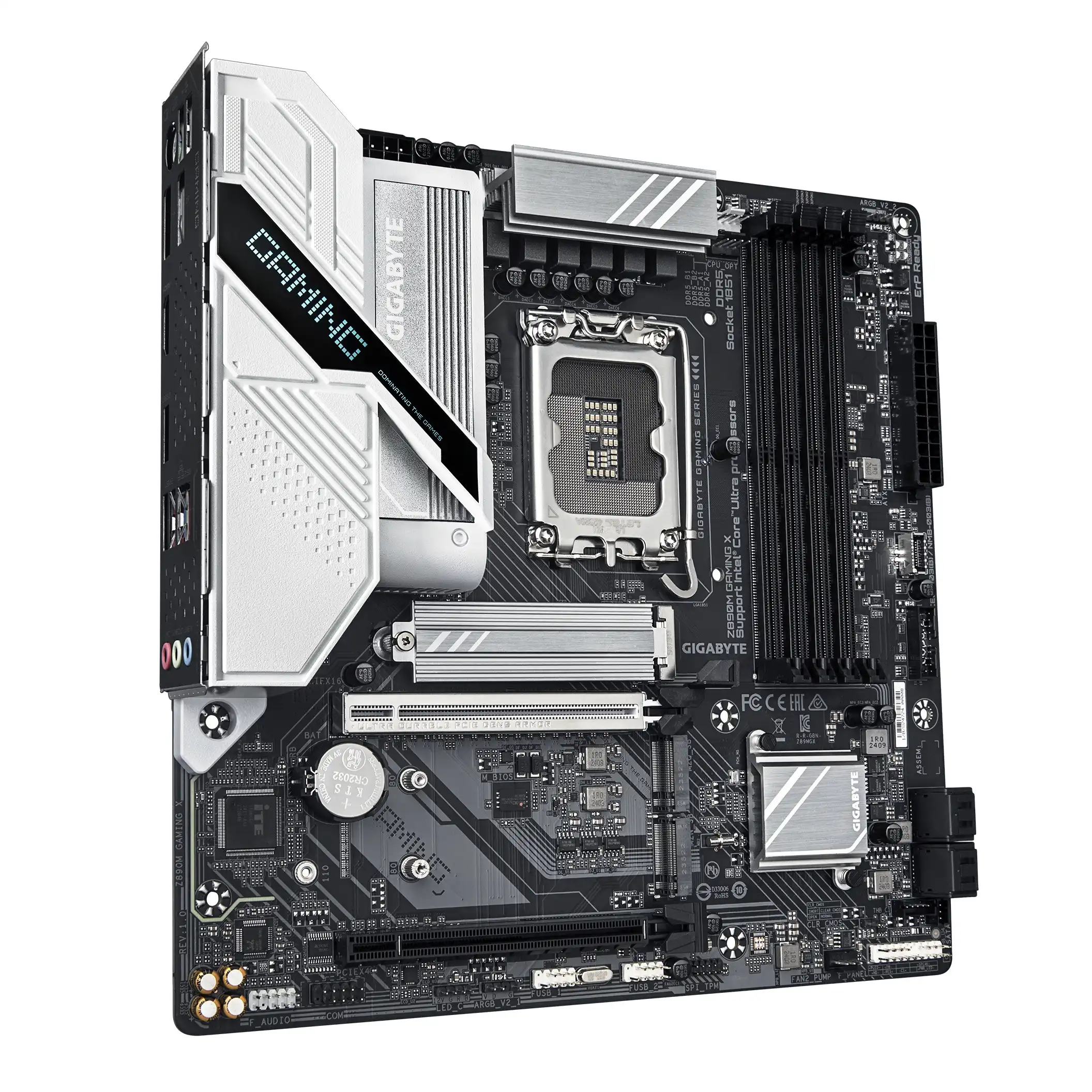 GIGABYTE Placa base Z890M GAMING X - Compatible con procesadores Intel Core Ultra (Serie 2), 8+1+2 fases VRM, hasta 8800MHz DDR5 (OC), 1xPCIe 5.0 + 2xPCIe 4.0, LAN 2.5GbE, USB 3.2 Gen 1. Fabricante de procesador: Intel, Socket de procesador: LGA 1851 (Socket V1), Procesador compatible: Intel Core Ultra (Series 2). tipos de memoria compatibles: DDR5-SDRAM, Memoria interna máxima: 256 GB, Tipo de ranuras de memoria: DIMM. Interfaces de disco de almacenamiento soportados: M.2, SATA III, Tipos de unidades de almacenamiento admitidas: HDD & SSD, Niveles RAID: 0, 1, 5, 10. Tipo de interfaz ethernet: 2.5 Gigabit Ethernet. Componente para: PC, Factor de forma: micro ATX, Familia del chipset: Intel