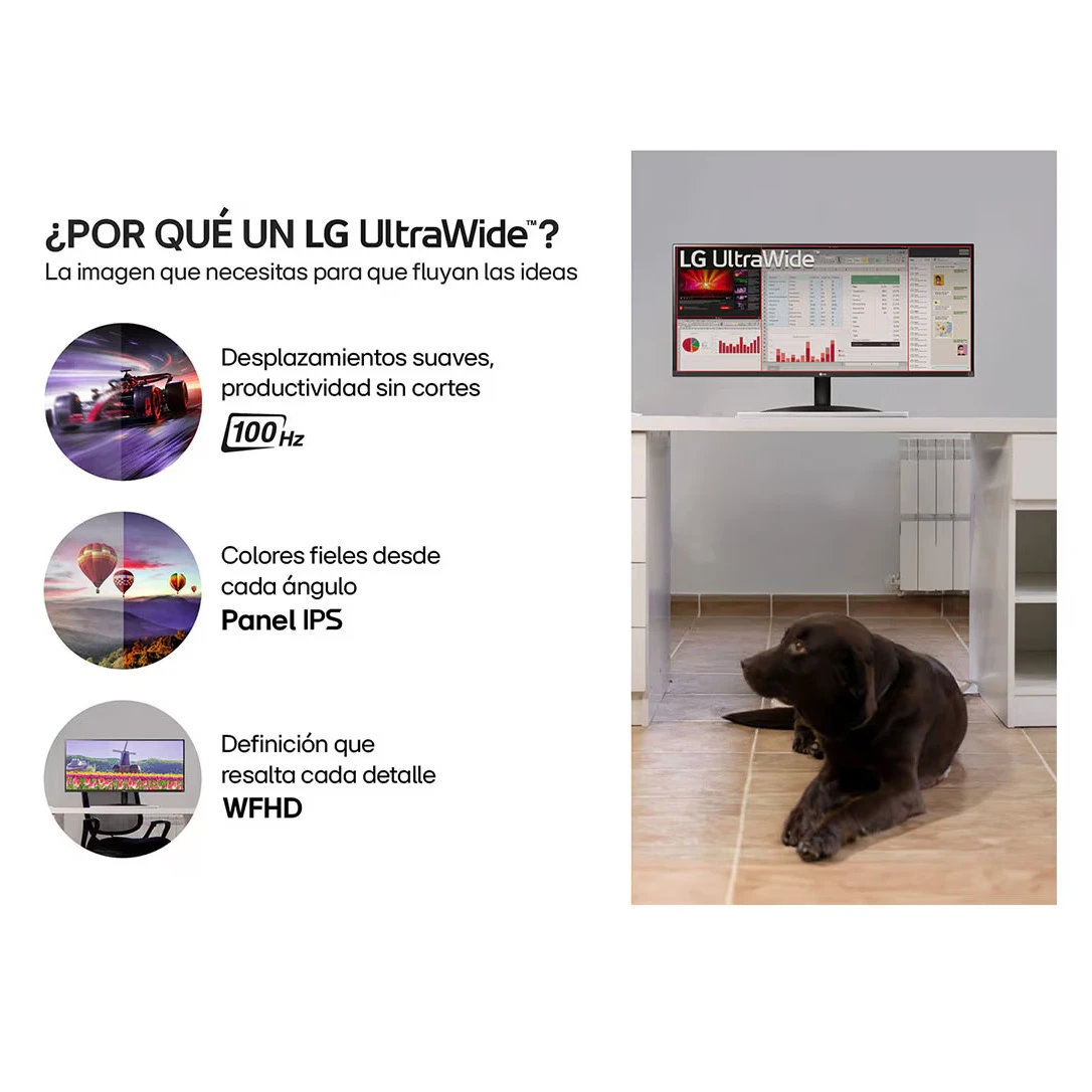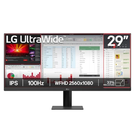 Pantalla IPS UltraWide 21:9 WFHD (2560x1080) de 29” para espacios más reducidos