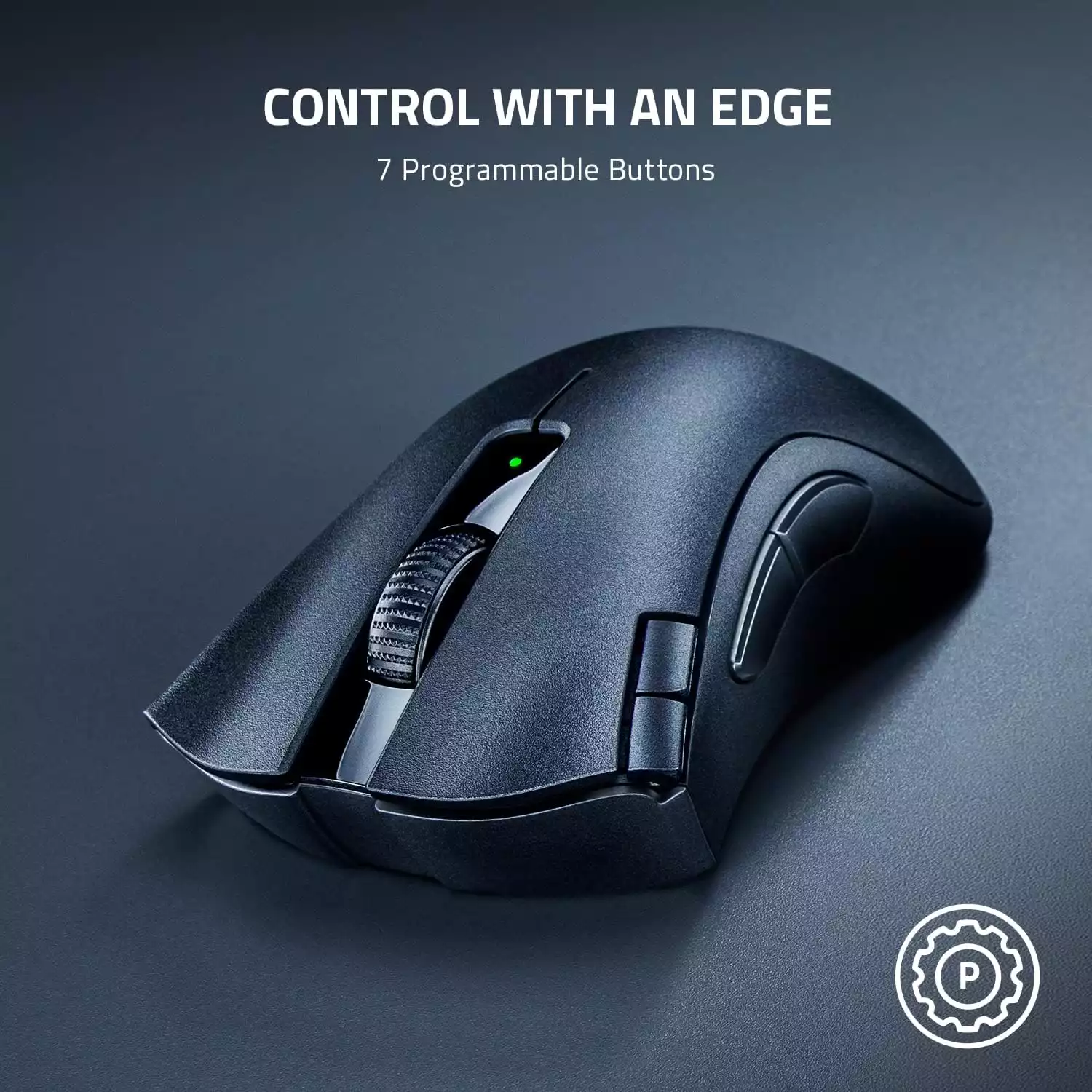 Una ergonomía icónica que ahora llega con un control sin límites, gracias a la conectividad doble mediante tecnología Razer™ HyperSpeed Wireless ultrarrápida o Bluetooth, así como a 7 botones programables que incluyen 2 botones de fácil acceso en el borde.