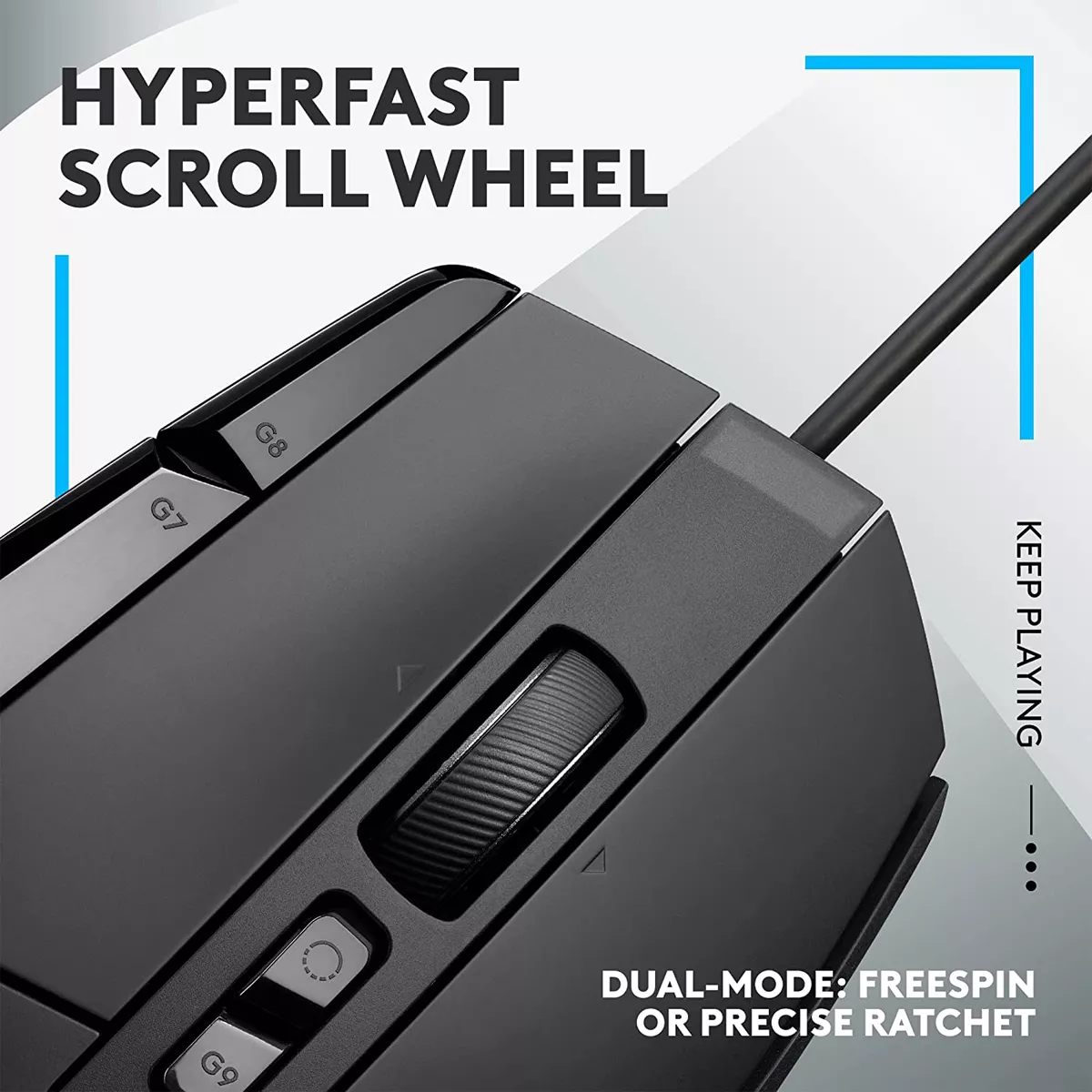 El icónico diseño del G502 incluye una impresionante reducción de peso, con tan sólo 89 gramos, gracias al fino exoesqueleto con un mínimo de material y la máxima rigidez, un botón rueda aligerado, etc.