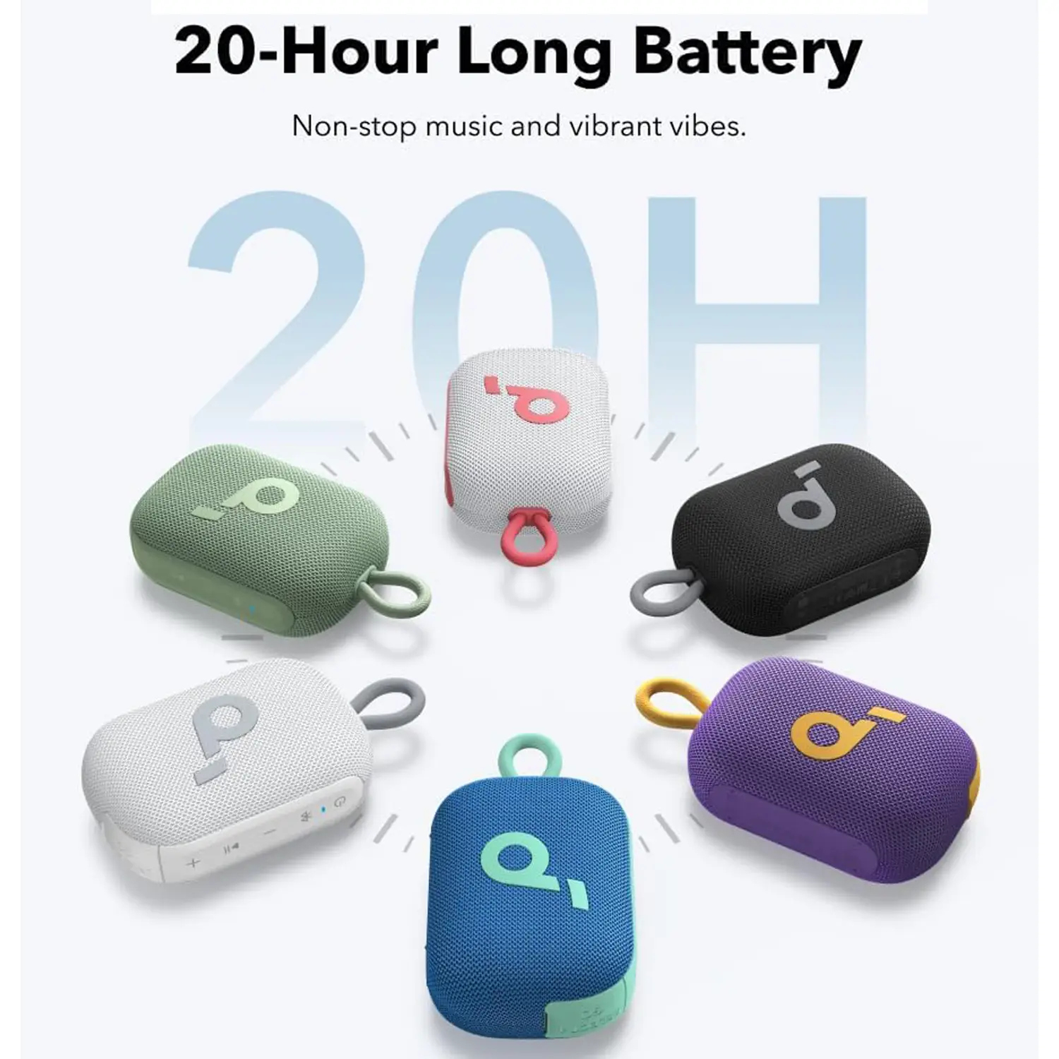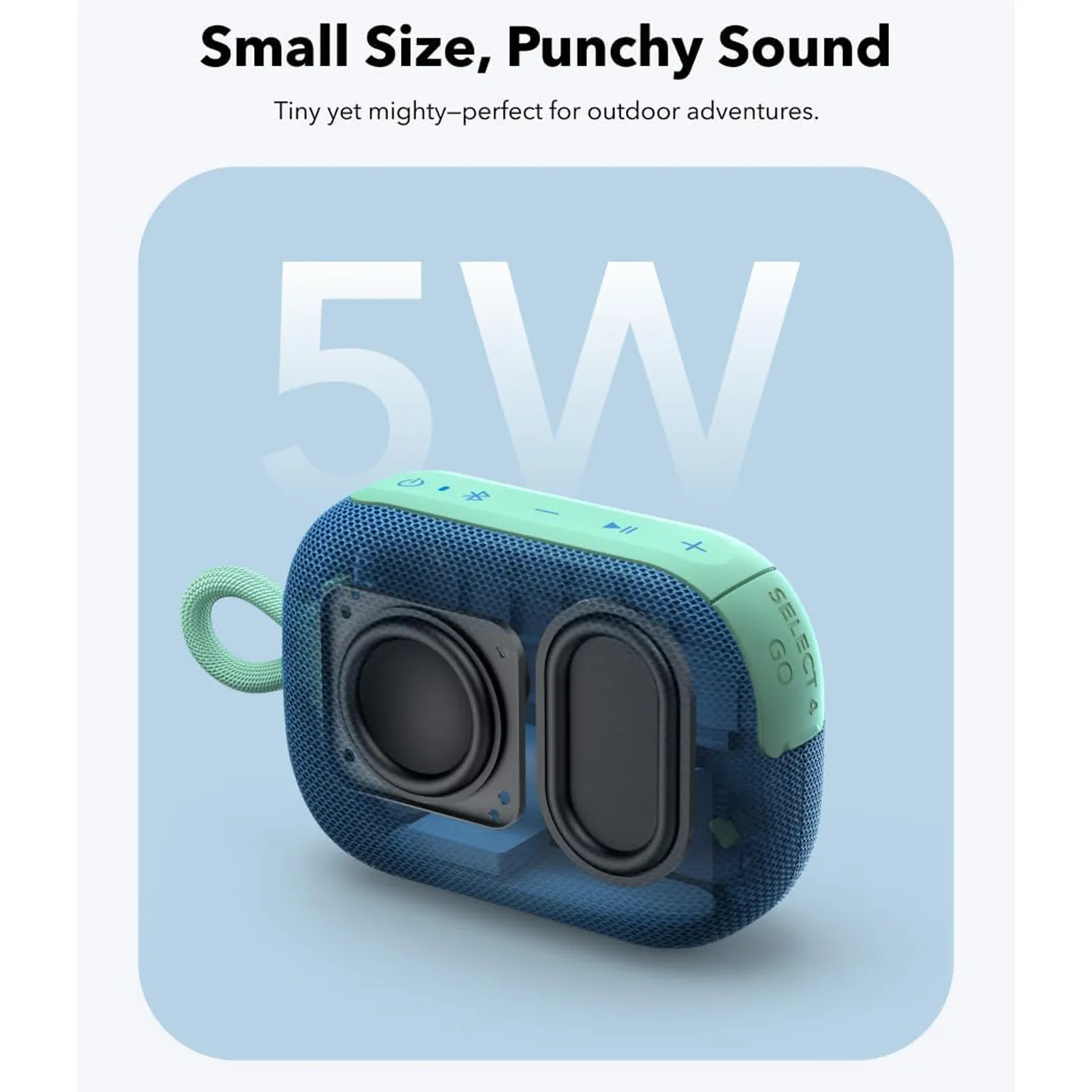 Soundcore Select 4 Go es un altavoz Bluetooth compacto con hasta 20 horas de duración de batería, resistencia al agua y al polvo con clasificación IP67 y un diseño liviano con una correa para transportarlo fácilmente. Ofrece una salida de 5 W para un audio claro y potente y emparejamiento True Wireless Stereo (TWS),