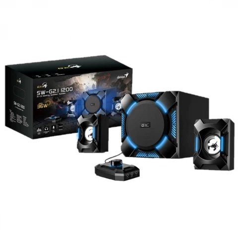 Genius le trae el sistema de parlantes para juegos de 3 piezas de 36 vatios, SW-G2.1 1200 para su popular serie GX para juegos. El subwoofer utiliza una unidad de controlador de 5,25” con un puerto réflex en un gabinete de madera, para que pueda experimentar graves intensos. Los satélites utilizan conos metálicos de 2,25” para un sonido medio y alto vívido y vibrante.