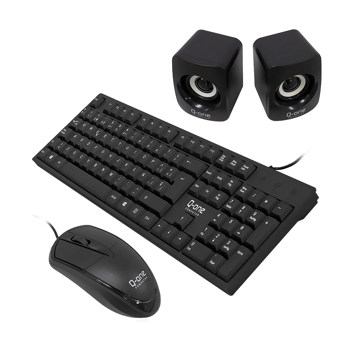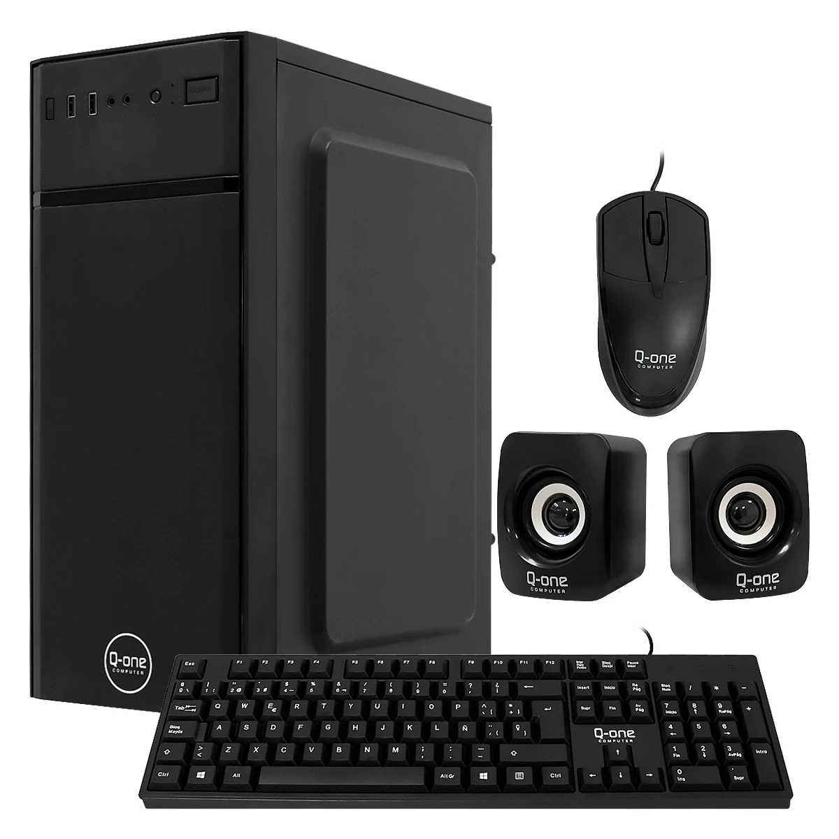 El Combo Case Q-One C6016 es una solución completa para tu PC, que incluye una caja ATX de color negro, fuente de 250W, teclado, mouse y parlantes. Ideal para quienes buscan un equipo funcional y elegante. Con dos puertos USB para mayor conectividad, este combo es perfecto para armar tu estación de trabajo.