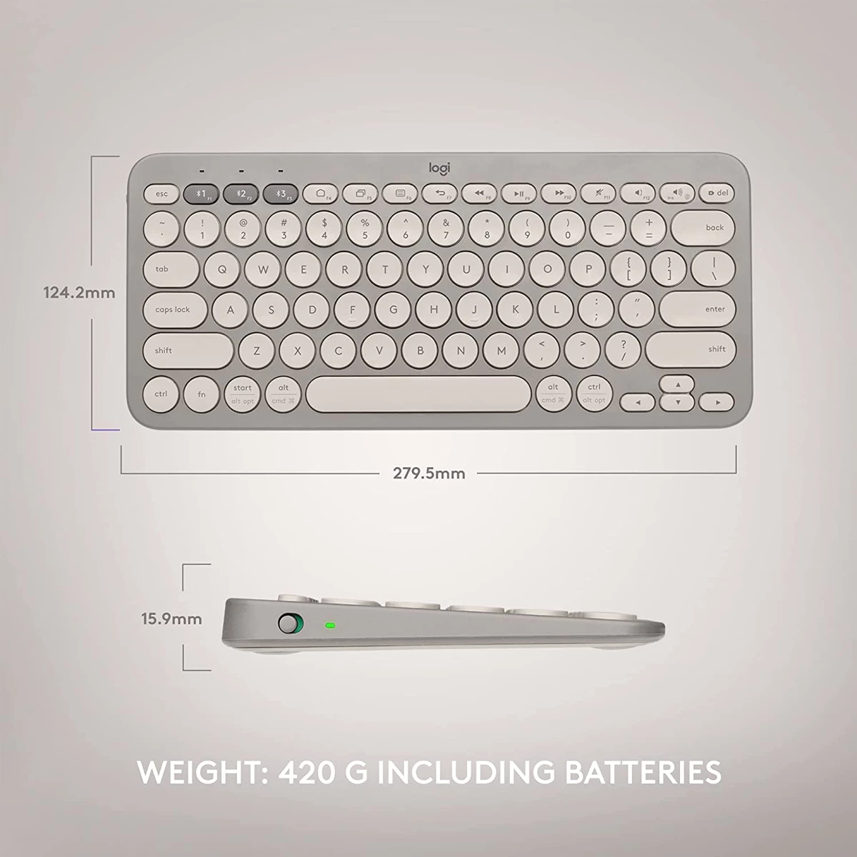 Todas las teclas en un diseño compacto. El tamaño extrapequeño te permite colocar el mouse más cerca. Así tendrás que estirar menos el brazo y podrás disfrutar de más confort y mejor postura corporal. Las teclas cóncavas con mecanismo de tijera y bajo perfil son ideales para las puntas de tus dedos y ofrecen una experiencia de escritura fluida y discreta parecida a la de una laptop. Y además cabe en una bolsa.