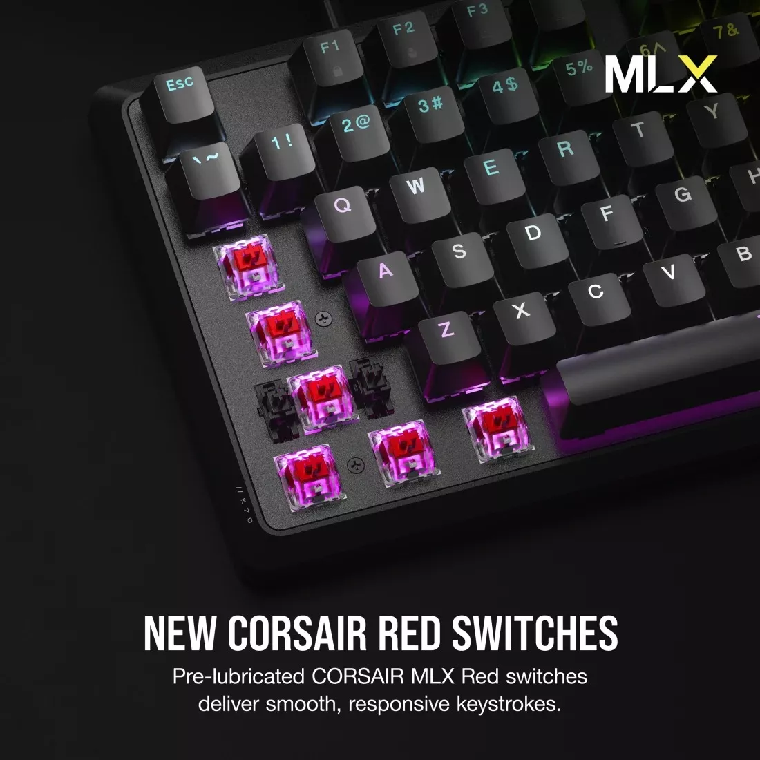 Magnífica experiencia de teclado mecánico: Los interruptores mecánicos lineales CORSAIR Red prelubricados proporcionan pulsaciones suaves y con gran capacidad de respuesta, mejorada con dos capas de amortiguación del sonido para disfrutar al máximo de los juegos y el tecleo.
